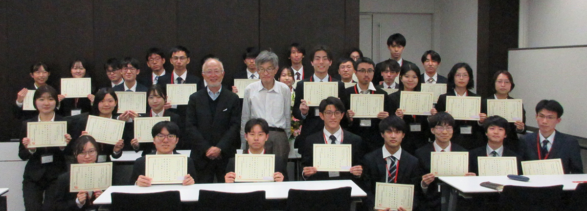 早稲田大学で令和8年(2026年)3月5日開催された【応用化学専攻 褒賞、奨学金 授与式】に里見奨学会より辻󠄀常務理事他が参加しました。先進理工学研究科長の朝日先生より新規奨学生に認定証が授与されるとともに、辻󠄀常務理事らが祝辞を述べました。